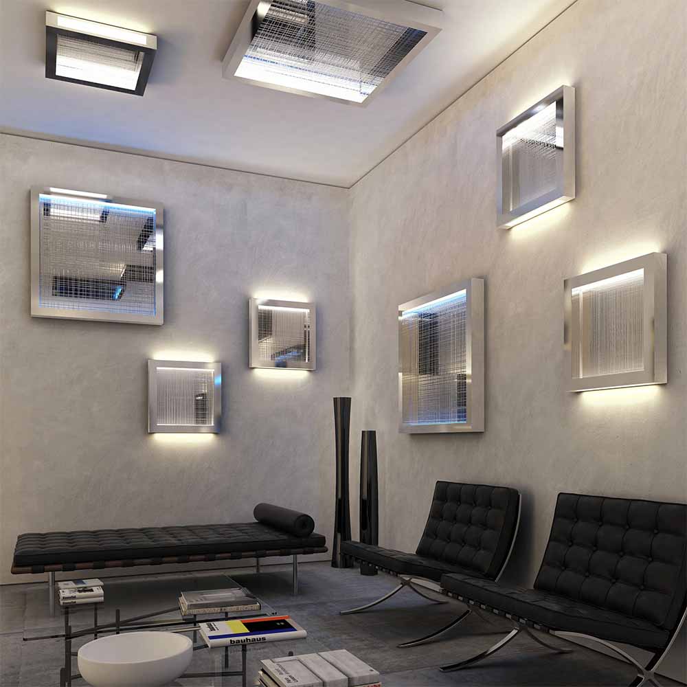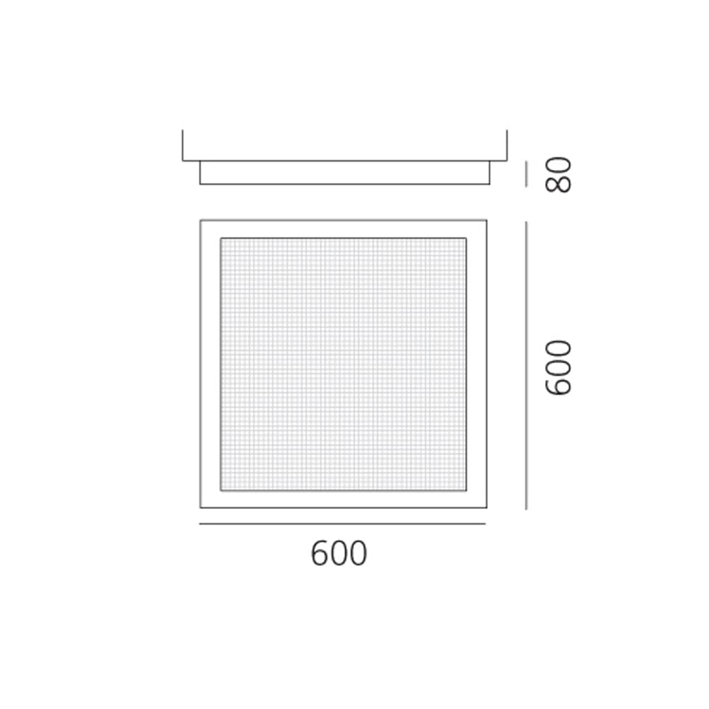 Sorgente luminosa: LED 76W – 3000 K – 3822 lumen – CRI=90 – Dimmer Push – IP20. Dimensioni: L 60 cm W 60 cm H 8 cm