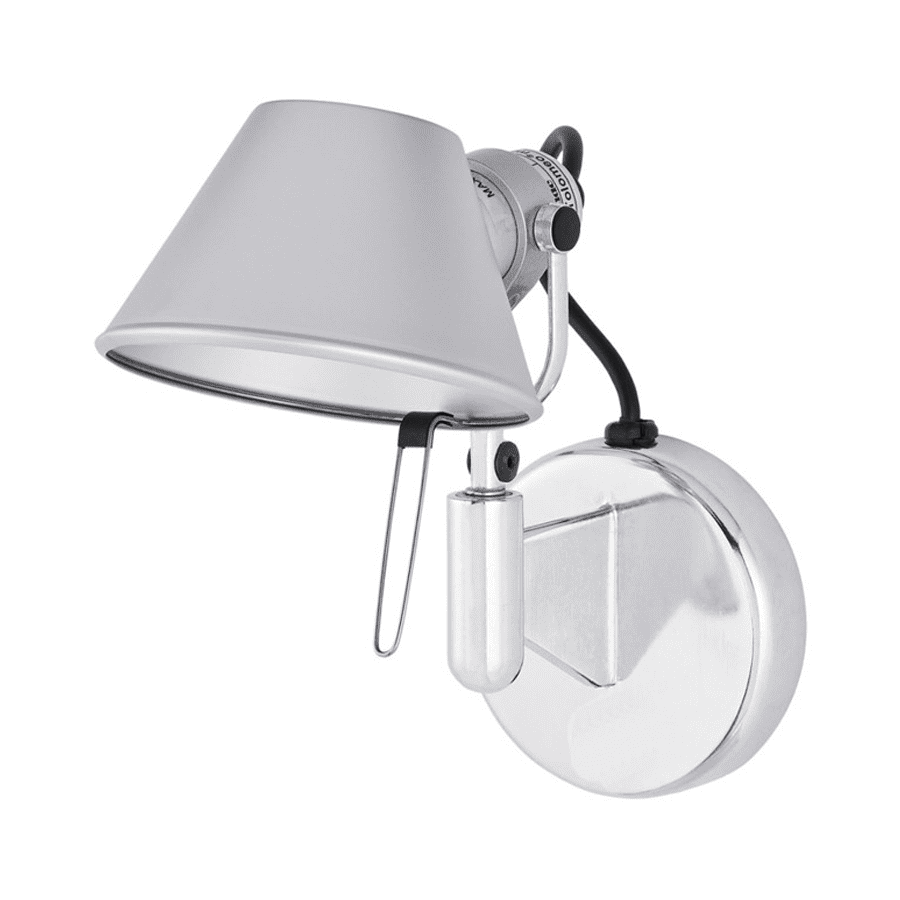 Supporto parete in alluminio lucidato; diffusore in alluminio anodizzato opaco. Versione con interruttore.