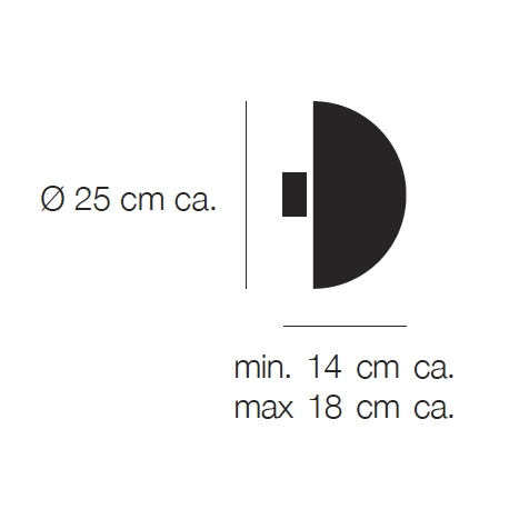 Sorgente Luminosa: LED COB 1x13W 2700k – lumen 2019 – CRI80 -220-240V – IGBT / Triac dimmerabile – Dimensioni: cupola Ø 25 cm sporgenza 14/18 cm