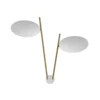 Sorgente luminosa: modulo LED 2x17W 2700k – lumen 3400 – CRI >80 – 240V dimmerabile. Dimensioni: base Ø 7×2,5 cm, dischi orientabili Ø 17 cm, H 47 cm,larghezza 45 cm, sporgenza 29 cm