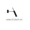 Sorgente Luminosa: LED GU10 230V, 1×5,5W, K 3000 – lumen 375 – CRI >90 – 240V – con on/off (110V – lampadine non incluse) – on/off – Dimensioni: base 10x10x3,5 cm, tubo/i Ø 5,6×24 cm, sporgenza variabile 35/50 cm