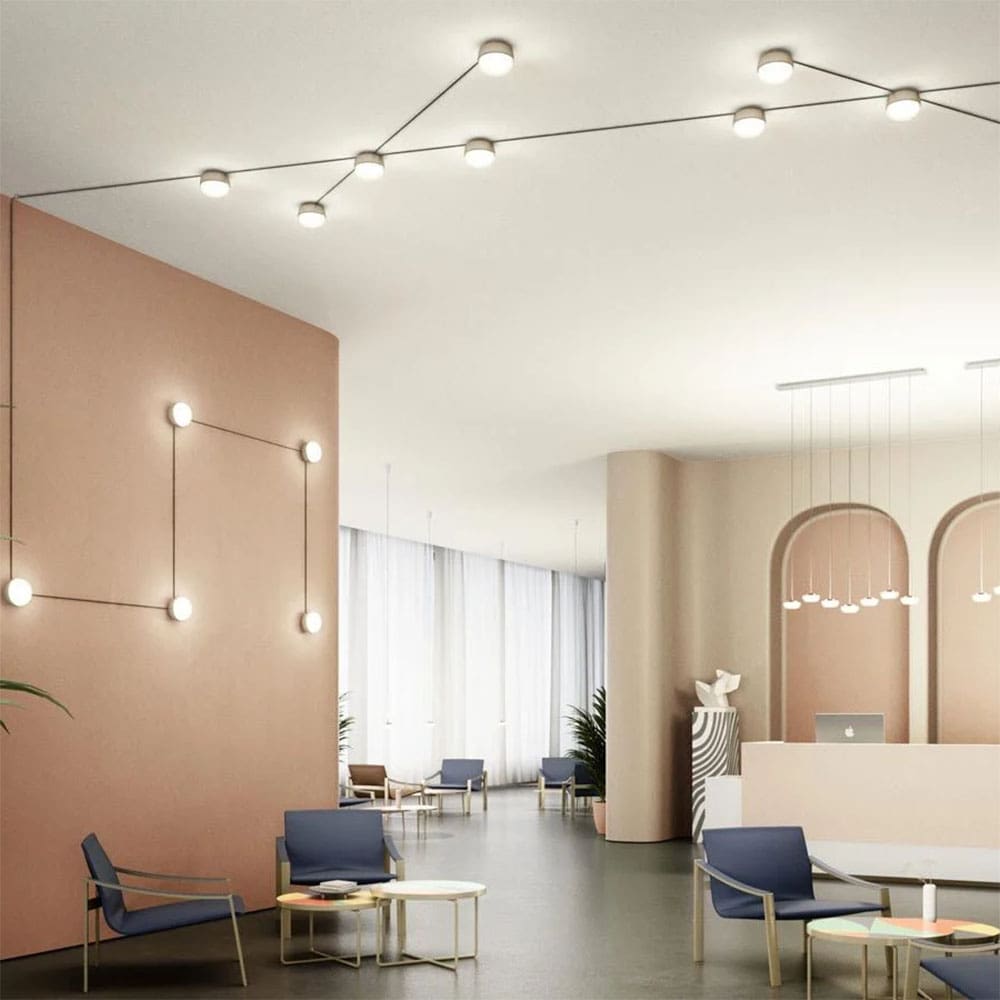 Kiki è una deliziosa luce modulare che aggiungerà un tocco pop e di stile a qualsiasi spazio. ‎Creata da Contardi Studio, la lampada è disponibile nelle versioni da parete, da tavolo e sospensione, con struttura in metallo nelle finiture nickel dorato satinato, bronzo-nickel spazzolato, antracite o bianco, e diffusore in vetro opale bianco. Il cavo in tessuto può essere in tinta o in contrasto con il corpo illuminante, permettendo di creare pattern a parete. La versione Connect ha protezione IP44 e può essere ordinata con una spina per il collegamento a una presa. Il cavo di collegamento in tessuto, nei colori arancio, nero o sabbia, può essere bloccato dove lo si desidera con un sistema fermacavo.