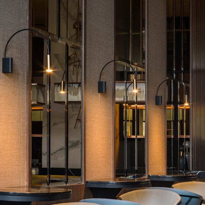 VOLTA parete – LED 3000k – corpo nero con finitura testa in oro