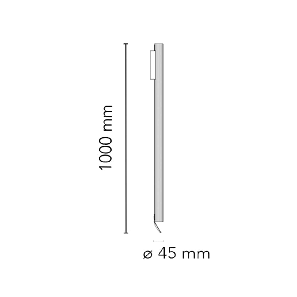 Sorgente Luminosa: LED 12W – 2700 K – 493 lumen – CRI>95 – Dimmable Push/Dimmable DALI 1 – 220/240 V – IP40. Dimensioni: H 1000 mm Ø 45 mm