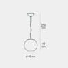 Sorgente luminosa: 1x max 150W E27 – Alimentazione 100 – 240V – IP20 – dimmerabile. Dimensioni: H 430 mm Ø 450 mm Cavo 2500 mm