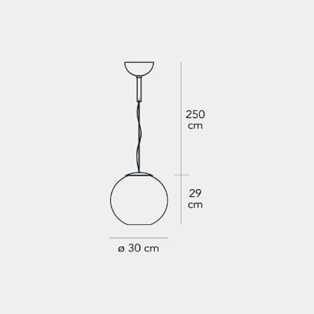 Sorgente luminosa: 1x max 60W G9 – Alimentazione 100 – 240V – IP20 – dimmerabile. Dimensioni: H 290 mm Ø 300 mm Cavo 2500 mm