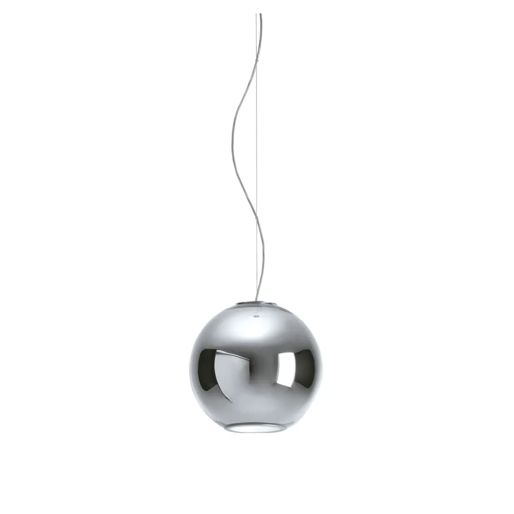 Globo di Luce è una lampada a sospensione a luce diretta, dimmerabile, creata da Roberto Menghi per Fontana Arte. Diffusore in vetro soffiato metallizzato. Il vetro soffiato, nella finiture cromo e rame metallizzato, impreziosisce il paralume sferico di questa famiglia di lampade, disponibili nella versione da tavolo e, in tre diverse misure, nella versione a sospensione. Fonte luminosa non inclusa.