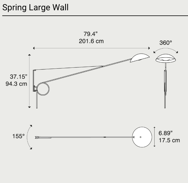L’elemento tubolare del braccio in metallo che caratterizza la lampada si piega su sé stesso, creando così un cerchio che ricorda una molla: Spring si ispira ad una spilla da balia che, grazie ad un segno grafico minimale ed elegante, connota in modo distintivo la lampada richiamando il mondo fashion.