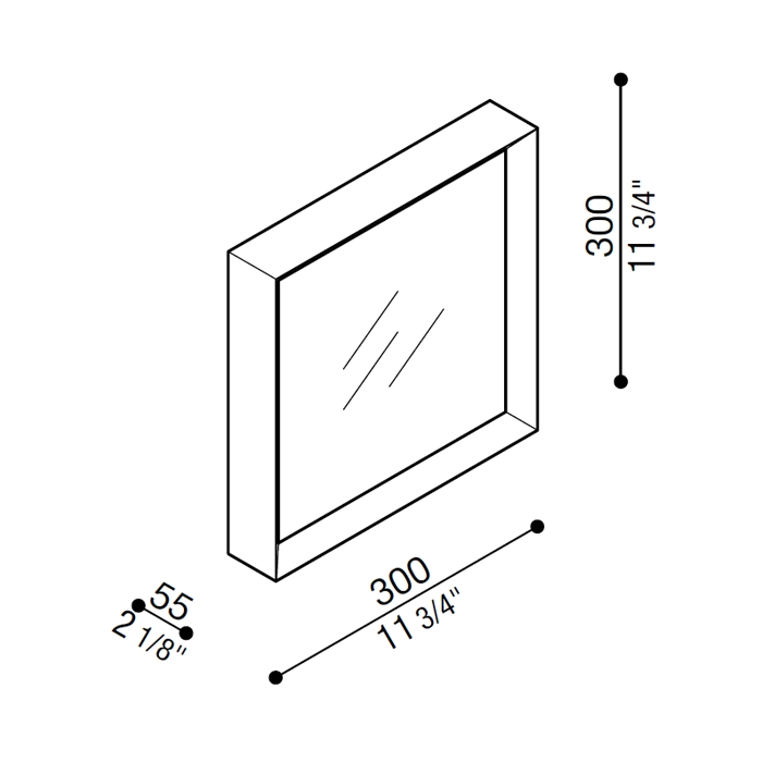 Sorgente luminosa: LED 30W dimmerabile 220-240 V – 3000k – CRI >80 – 2660 lumen – IP 20. Dimensioni: 300mm x 300mm x 55mm.