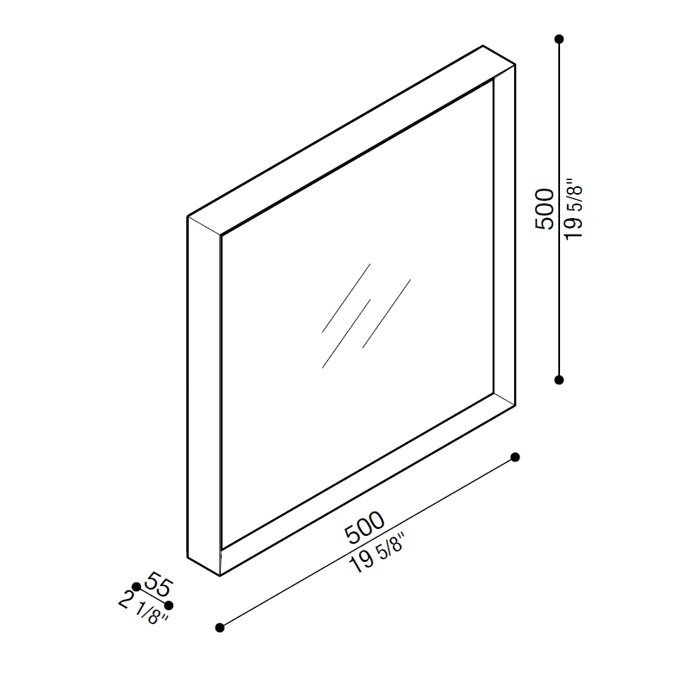 Sorgente luminosa: LED 39W dimmerabile 220-240 V – 3000k – CRI >80 – 3990 lumen – IP 20. Dimensioni: 500mm x 500mm x 55mm.