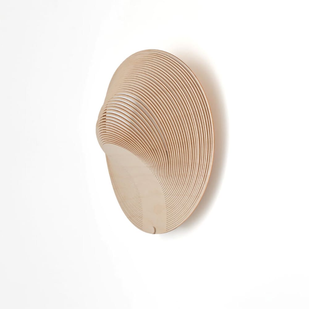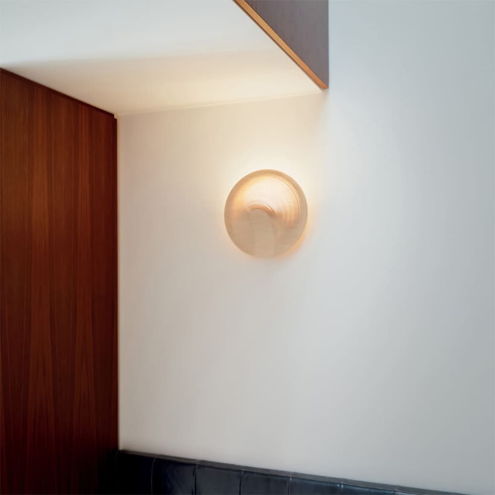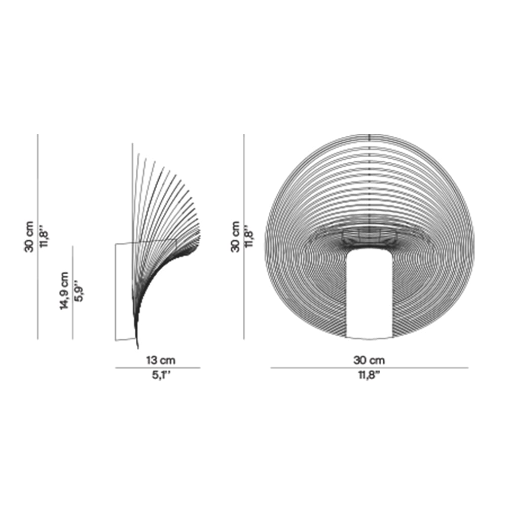 La versione da parete di Illan, disegnata da Zsuzsanna Horvath per Luceplan, combina forma leggera, innovazione tecnologica e sostenibilità. Questa lampada da parete è composta da un elemento in alluminio pressofuso, fissato alla parete, che ospita una sorgente LED integrata. La luce, calda e morbida, si diffonde verso l’alto, creando un’atmosfera accogliente e raffinata. La struttura in legno stratificato, estremamente sottile e flessibile, è tagliata al laser e presenta un elegante disegno geometrico (diametro 31 cm). Il paralume è realizzato utilizzando gli scarti della produzione del modello a sospensione Illan, garantendo un approccio sostenibile e innovativo. Perfetta per chi cerca una lampada moderna, elegante e rispettosa dell’ambiente.