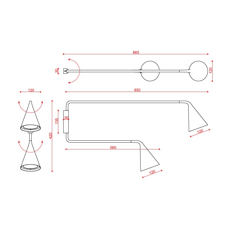 Sorgente luminosa: LED 2 x max 7,5 W E27 (non inclusa) – 220/240 V – Dimmer in base alla lampadina – IP40. Dimensioni: L 86,5 cm Ø 12 cm H 42 cm