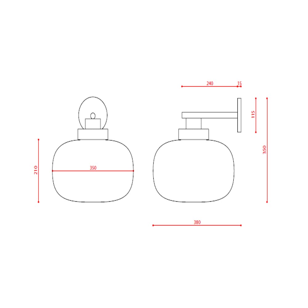 Sorgente luminosa: LED 10W 2700K – 1200 lumen – 220/240V – Dimmer a taglio di fase. Dimensioni : Ø 35 H 35 W 38 cm