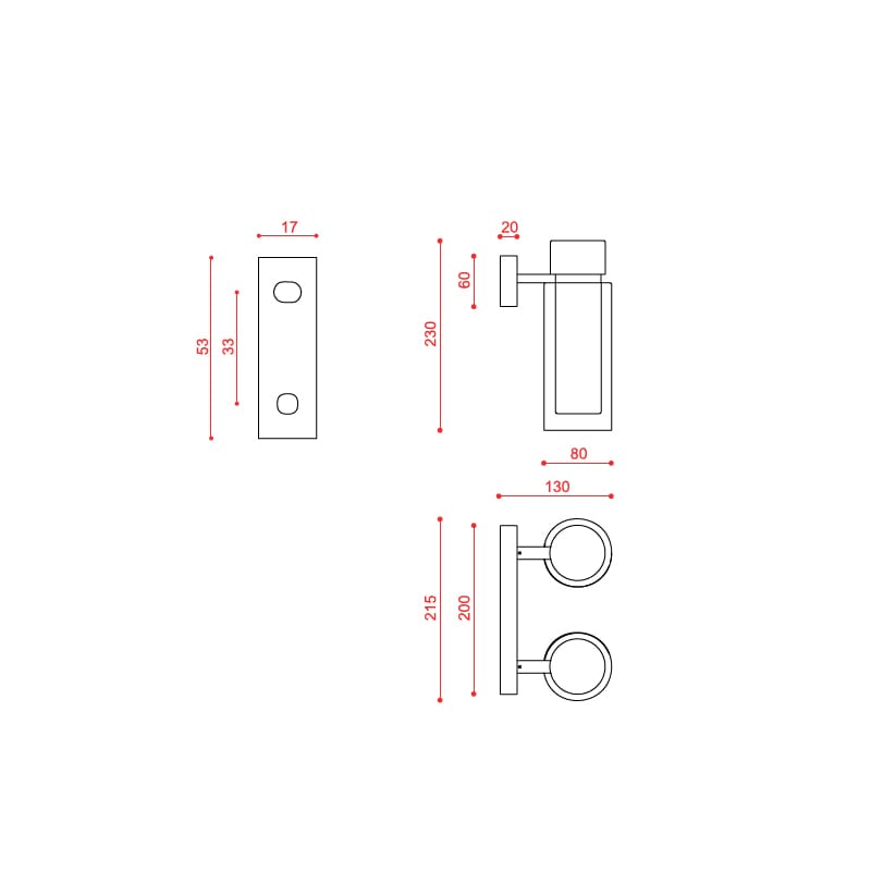 Sorgente luminosa: LED 2 x 8 W E14 (non inclusa) – 500 lumen – 220/240 V – Dimmer in base alla lampadina – IP20. Dimensioni: L 21,5 cm W 13 cm H 23 cm