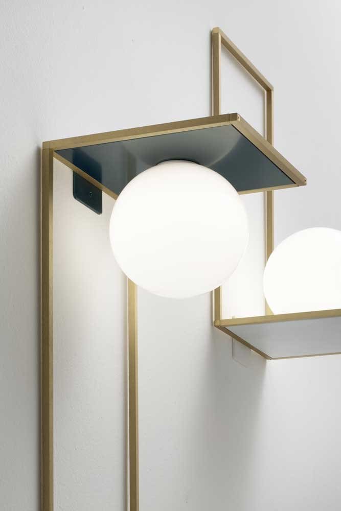 Vesoi Sottomultiplo 160-ap Lampada da parete con struttura ottone/acciaio. Finiture ottone grezzo/verniciato. Diffusore in vetro bianco-latte.