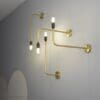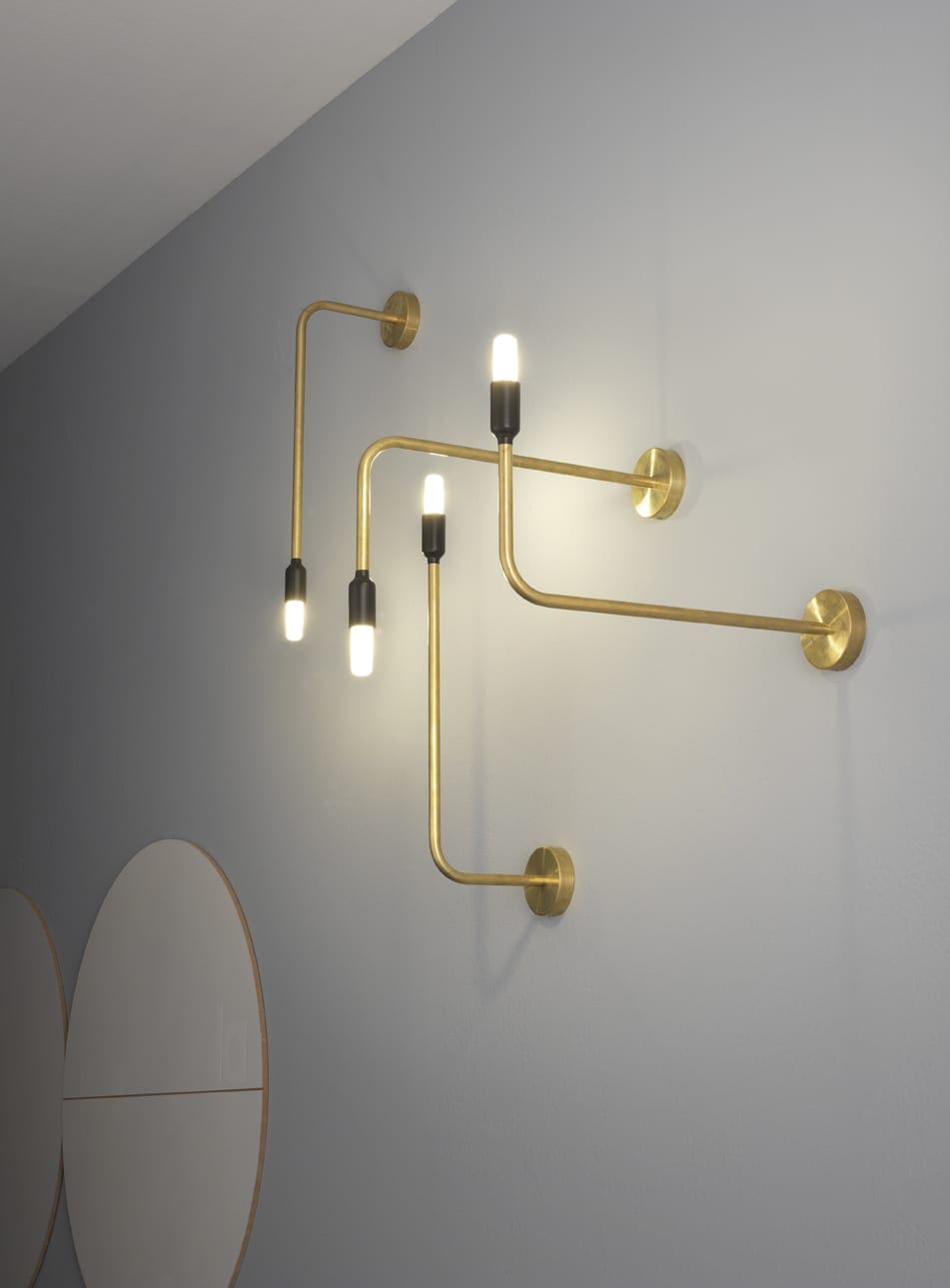 Vesoi T25 18-ap orizzontale Lampada a parete con struttura in acciaio o ottone-acciaio. Finiture verniciato o ottone/grezzo/verniciato. lampada led opale inclusa.
