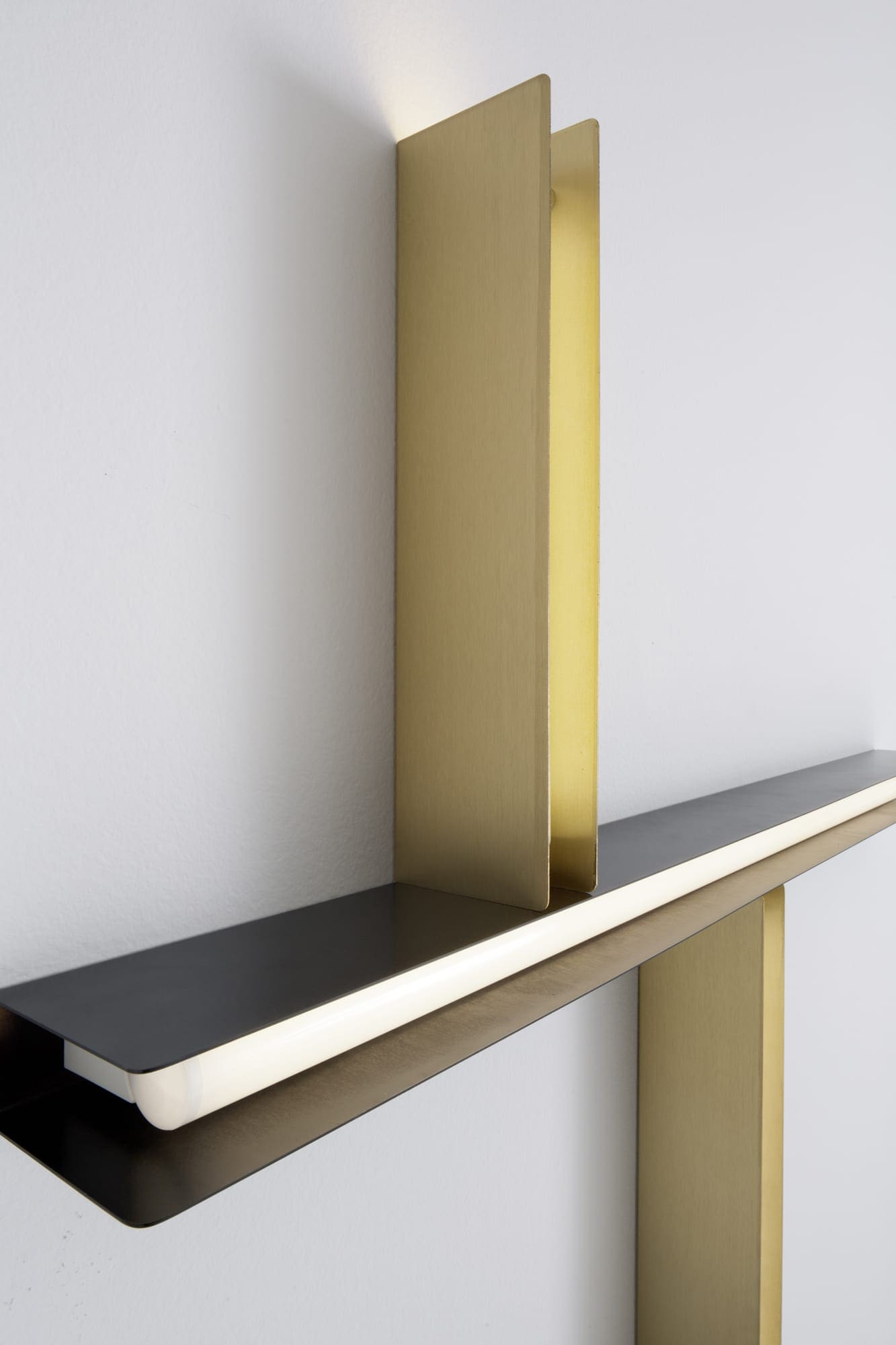 Vesoi U Brass 55-sp Lampada a parete/soffitto con struttura in acciaio o solido ottone. finiture verniciato o ottone grezzo. Lampada led opale inclusa.