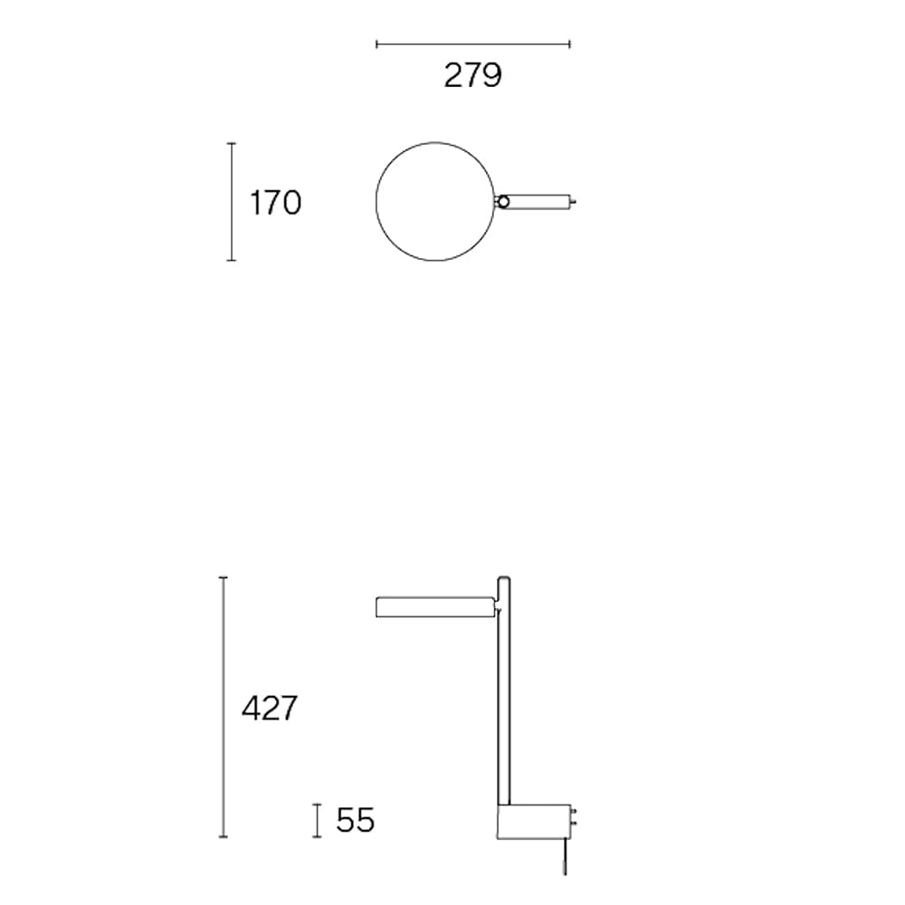 Sorgente luminosa: COB LED (incluso) 7,3W 2700k – 457 lumen – 100-240 V – dimmerabile – CRI 96. supporto a parete lungo. Dimensioni: P 279mm – H 427m