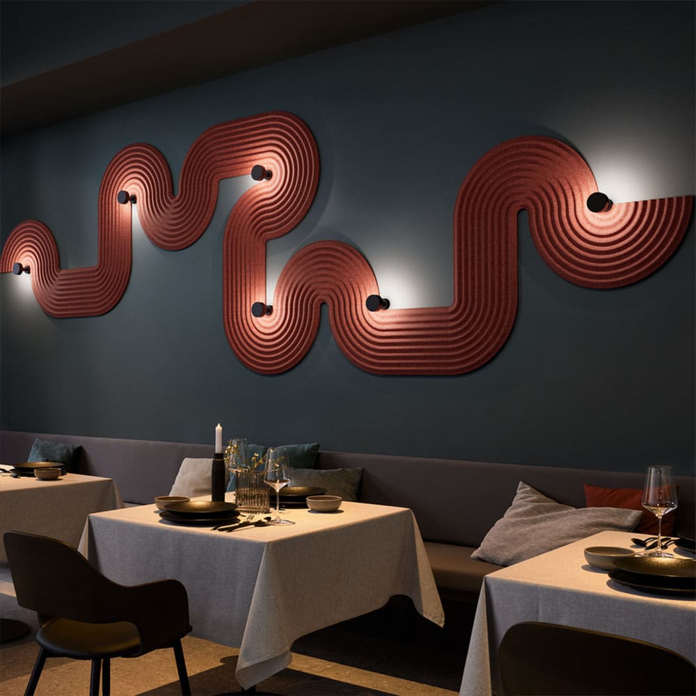 TAPIS SOFT FLEXFY 3.0 di Wever e Ducré è una lampada da parete che unisce estetica e funzionalità, ideale per ambienti moderni. Realizzata in feltro PET di alta qualità, un materiale 100% riciclabile con proprietà fonoassorbenti, è disponibile in finiture come feltro bianco, feltro grigio calcare, feltro grigio marmo e feltro rosso ossido. Il design ondulato con superficie scanalata offre un’illuminazione indiretta e diffusa, creando un’atmosfera calda e accogliente. Dotata di sorgente LED integrata con temperatura colore di 2700K, garantisce una luce morbida e uniforme. Compatibile con il sistema modulare FLEXFY, TAPIS SOFT FLEXFY 3.0 si integra perfettamente in spazi residenziali o commerciali, contribuendo al comfort acustico e visivo.