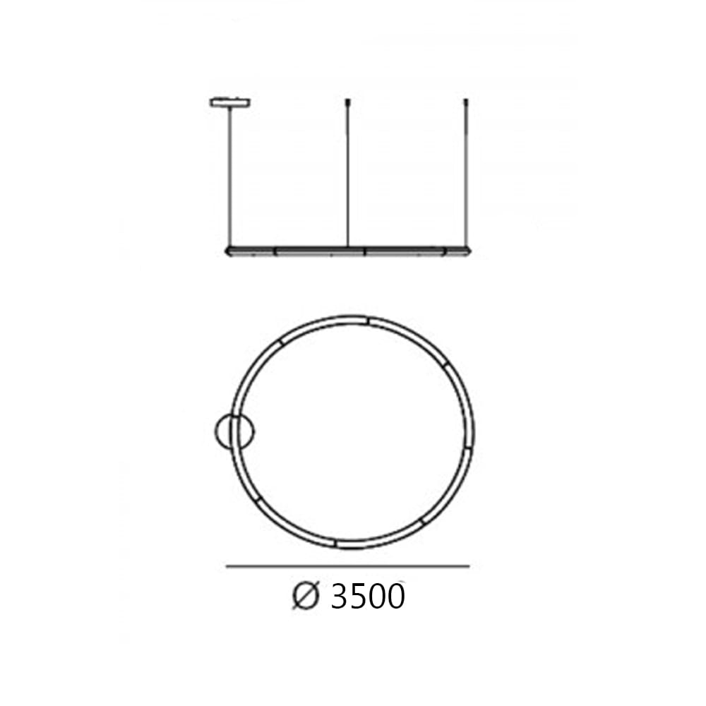 Sorgente Luminosa: LED 141 W – 3000 K – 20953 lumen – CRI=90 – 220–240 V – Push & APP,Push/DALI – IP20. Dimensioni: H 100 mm Ø 3500 mm