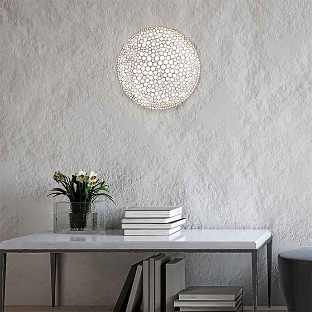 La lampada da parete/soffitto Calipso 3000K di Artemide รจ una combinazione perfetta di design e tecnologia. Creata da un algoritmo basato su una foto della luna, la sua forma frattalica, composta da cerchi di diametro variabile, riproduce la bellezza naturale e irregolare. Questo design unico non solo offre un’estetica sorprendente, ma garantisce anche un’emissione luminosa confortevole, ideale per ambienti domestici e professionali. Calipso รจ compatibile con Artemide App, permettendo il controllo remoto dell’illuminazione, per regolare l’intensitร e creare l’atmosfera perfetta. La temperatura colore di 3000K diffonde una luce bianca calda, adatta a contesti che richiedono un’illuminazione accogliente e raffinata. Questa lampada rappresenta l’equilibrio ideale tra funzionalitร e design, incarnando l’approccio distintivo di Artemide.