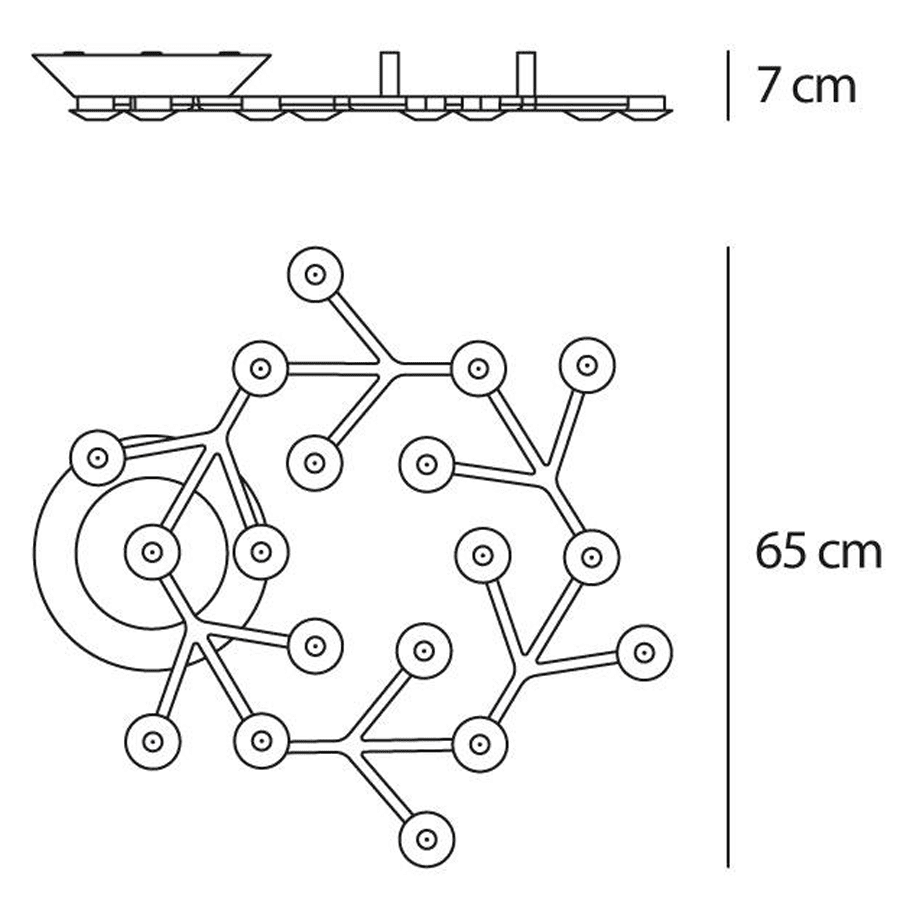 Struttura in alluminio verniciato. Ogni LED è dotato di lente in metacrilato trasparente e di porta-lente in metacrilato satinato.