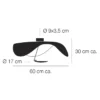 Sorgente luminosa: modulo LED 1x17W 2700k – lumen 1700 – CRI >80 – 240V dimmerabile. Dimensioni: base Ø 9×3,5 cm, schermo Ø 50 cm, H 26 cm, disco orientabile Ø 17 cm