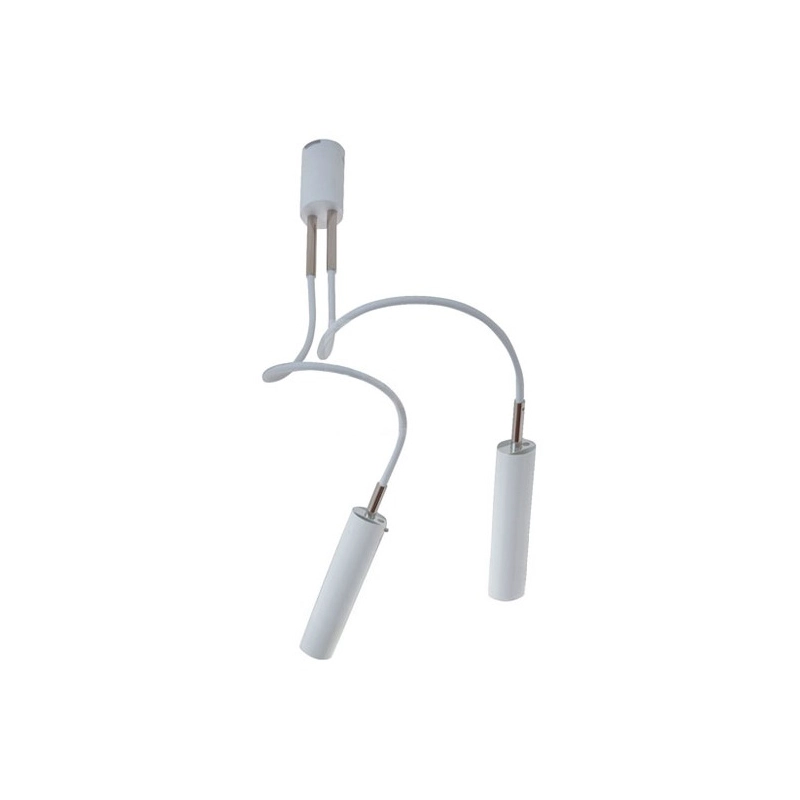 Sorgente Luminosa: LED GU10 230V, 2×5,5W, K 3000 – lumen 750 – CRI >90 -240V (110V – lampadine non fornite) – Triac dimmerabile – Dimensioni: base Ø 7×10,5 cm, tubo Ø 5,6×24 cm, H 80 cm variabile