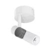 Goose è un proiettore decorativo da soffitto che, grazie alla rotazione su entrambi gli assi, consente un’ampia libertà di puntamento. La sorgente recessa migliora il comfort visivo e riduce l’abbagliamento. Le preziose finiture oro spazzolato e nichel spazzolato dello snodo, in contrasto con il bianco e nero raggrinzante del corpo lampada e della base, elevano esteticamente il prodotto e danno una percezione di alta qualità materica. Gli snodi consentono una rotazione orbitale di 350° su entrambi gli assi, compresa la posizione zenitale: puoi utilizzare Goose come proiettore o persino come cilindro a soffitto.