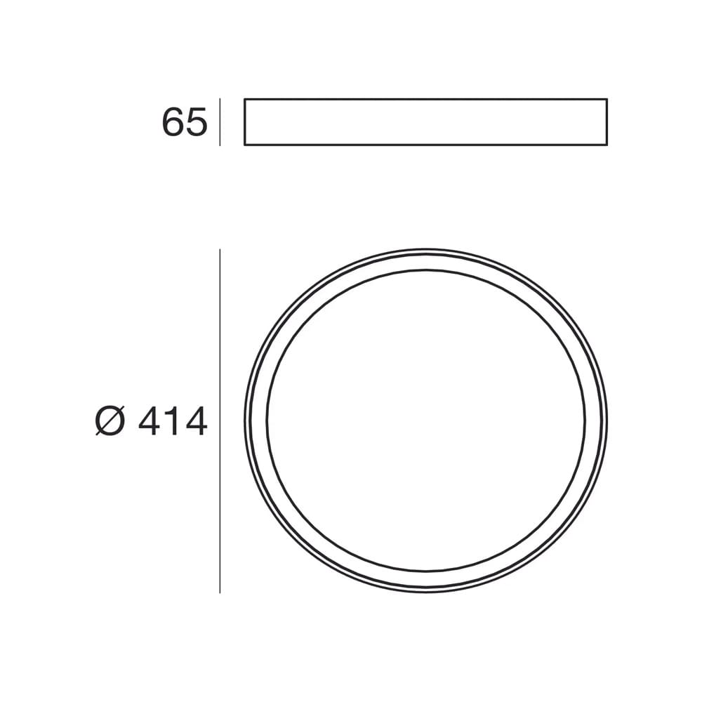 Sorgente Luminosa: 1 topLED 31W – 3285 lumen – 3000 K – CRI=90 – 220-240 V – IP40. Dimensioni: H 65 mm Ø 414 mm