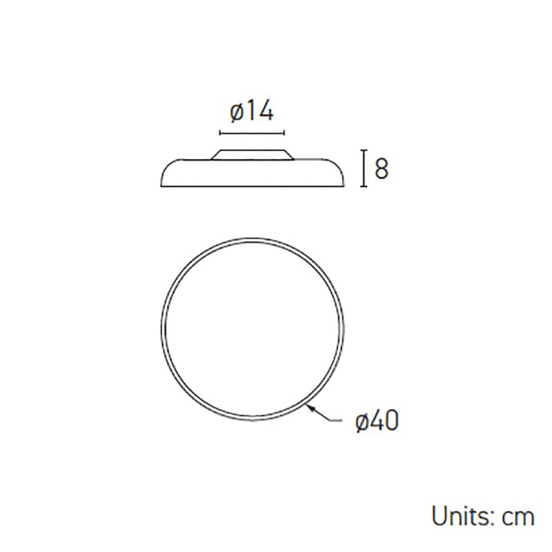 Sorgente luminosa: LED SMD (incluso) – 28W – 3000k – 220-240V – 2200 lumen – CRI >90 – IP20 – TRIAC dimmerabile . Dimensioni: Ø 40 cm H 8 cm Ø rosone Att.Plaf.14 cm