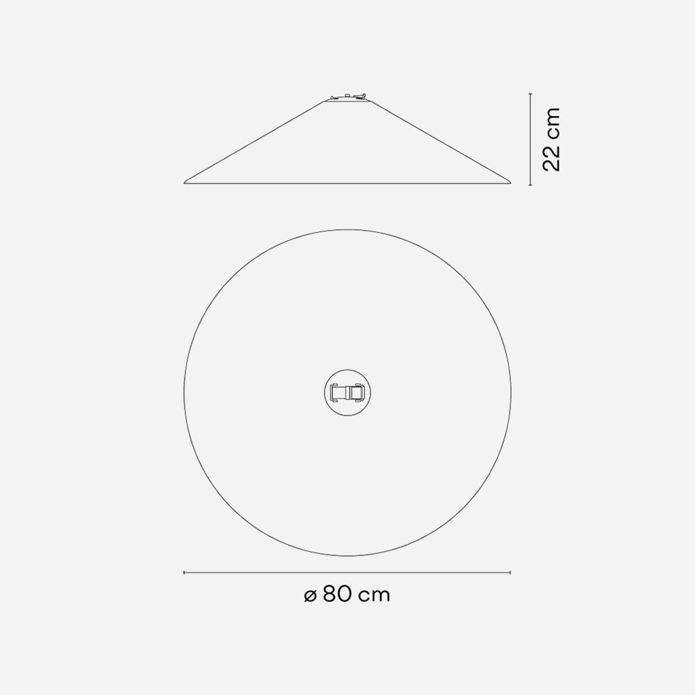Sorgente luminosa: 1 x LED 16 W 850mA – 2700K – 1492 lumen – CRI >90 – Dimmer On/Off – IP20. Dimensioni: H 22 cm Ø 80 cm.