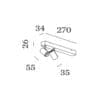 Sorgente luminosa: COB LED 13,7W – 3000K – 1050 lumen – CRI≥90 – 220-240V – Dimmer taglio di fase – IP20. Dimensioni: L 270 mm W 34 mm H 55 mm Ø 35 mm