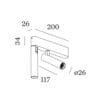 Sorgente Luminosa: LED 17,5 W – 3000 K – 1100 lumen – 220/240 V – dimmer a taglio di fase – IP20. Dimensioni: L 200 mm H 117 mm W 26 mm