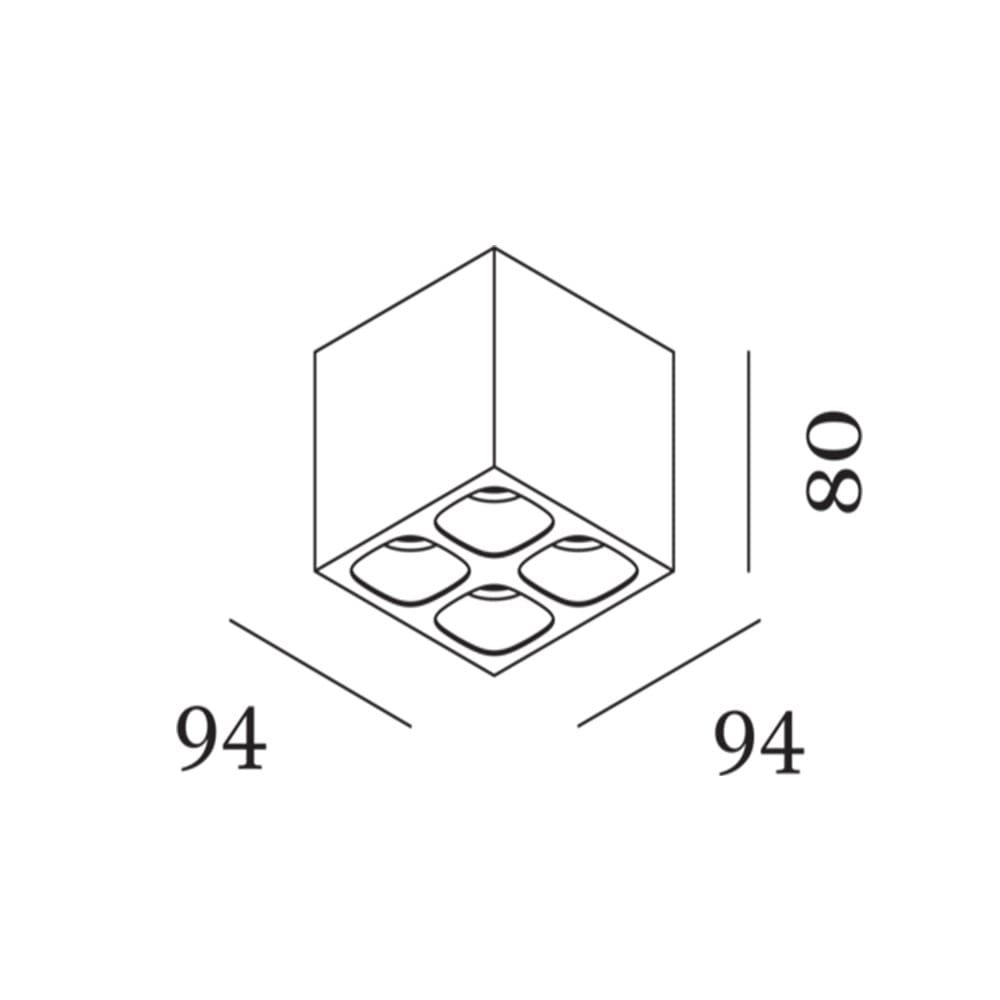 Sorgente Luminosa: LED 19,3W – 3000 K – 1340 lumen – 220 – 240 V – dimmer a taglio di fase – IP20. Dimensioni: H 80 mm L 94 mm W 94 mm