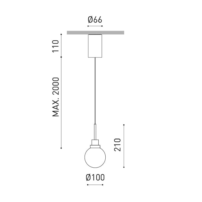 Sorgente luminosa: LED 8,4W 3000k – 1100 lumen – 44° – CRI>90 – IP20 – dimmer a taglio di fase – Dimensioni: Ø100mm. Lunghezza del cavo max 2m