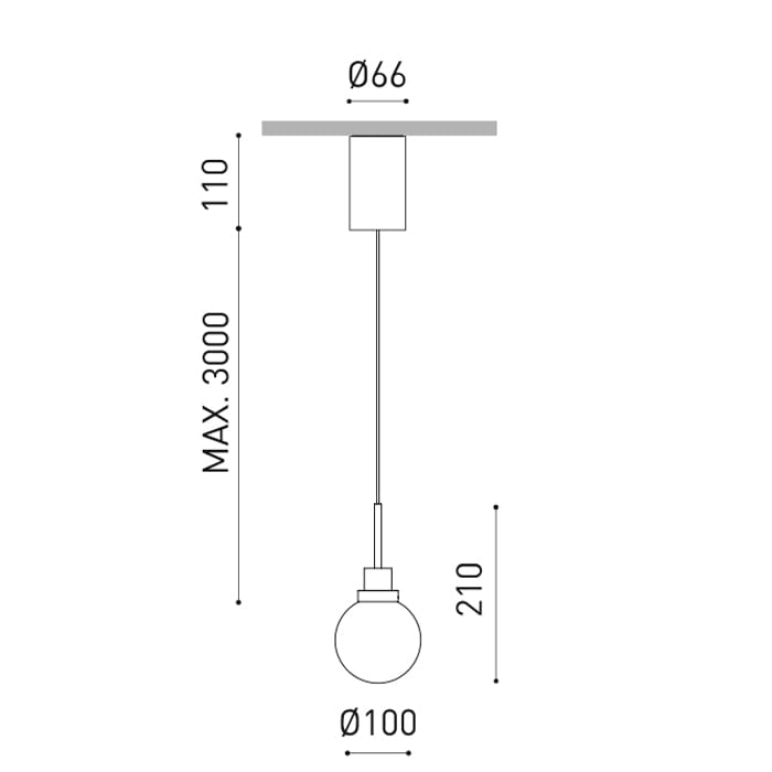 Sorgente luminosa: LED 8,4W 3000k – 1100 lumen – 44° – CRI>90 – IP20 – dimmer a taglio di fase – Dimensioni: Ø100mm. Lunghezza del cavo max 3m