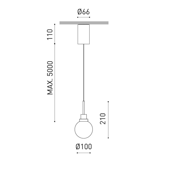 Sorgente luminosa: LED 8,4W 3000k – 1100 lumen – 44° – CRI>90 – IP20 – dimmer a taglio di fase – Dimensioni: Ø100mm. Lunghezza del cavo max 5m