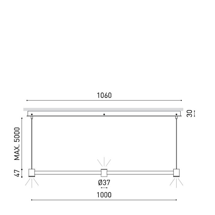 Sorgente luminosa: LED 6,3W 3000K – 630 lumen – 38°- CRI>90 – IP20 – non dimmerabile. Dimensioni: base 1060mm, lampada 1000mm. Lungheza del cavo max 5m