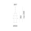 Sorgente Luminosa: 77W E27 (non inclusa) – IP20. Dimensioni: H 850 mm H max. 2000 mm Ø base 400 mm. Include: 1 x DS2040RIF ( asta + corpo elettrificato) 1 x DS2040CCRC (maglia 85 e cerchi inox)