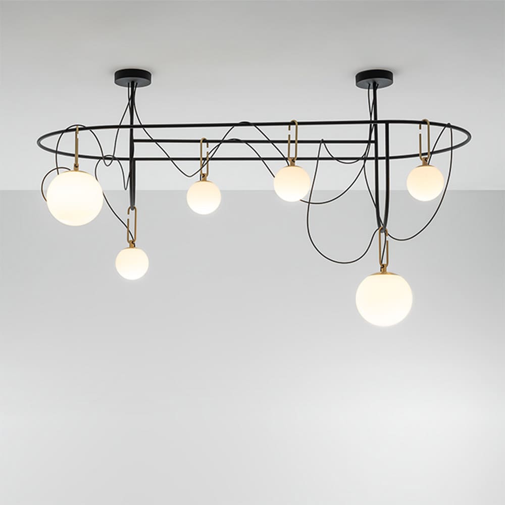 nh Sospensione/Soffitto di Artemide, disegnata da Neri&Hu, rappresenta un’evoluzione nella ricerca sull’interazione tra materiali, luce e cultura. Questo design armonioso combina tradizione orientale e modernità , utilizzando materiali di alta qualità come vetro soffiato, ottone e acciaio, creando un equilibrio estetico tra naturalezza e modernità . La lampada utilizza una sorgente LED retrofit a basso consumo, riflettendo l’attenzione alla sostenibilità e all’efficienza energetica. Con la sua forma leggera e versatile, nh si adatta perfettamente a diversi contesti, come lampada da sospensione o soffitto. Grazie alla sua modularità , può essere utilizzata singolarmente o in configurazioni multiple, arricchendo gli spazi con eleganza. nh Sospensione/Soffitto è una soluzione di illuminazione ideale per ambienti domestici e professionali, fondendo forma, funzione e cultura in un unico oggetto dal forte impatto visivo.
