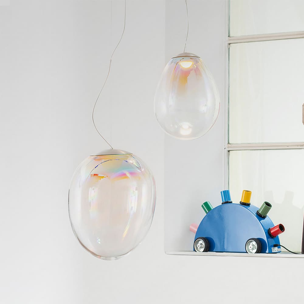 Stellar Nebula è una famiglia di lampade progettata da BIG per interpretare e valorizzare la soffiatura artigianale del vetro con innovative tecniche di finitura PVD. Valori, ruoli e limiti della produzione industriale e artigianale sono al centro di questa idea progettuale, che mira a trovare una soluzione di unicità produttiva. Le forme dei diffusori vengono ottenute mediante soffiatura del vetro e poi modellate liberamente dai maestri vetrai per renderle sempre uniche. Sapere artigianale e innovazione industriale si fondono così nella bellezza del materiale che esalta la magica interazione tra vetro e luce.