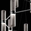 Zephyr è un lampadario minimalista ed elegante, disegnato da Carlo Colombo e prodotto dal marcio Artemide, dotato di una struttura modulare che consente di realizzare infiniti layout personalizzati in base alle esigenze di ogni progetto. L’elemento modulare è un doppio diffusore cilindrico con un corpo centrale che racchiude le sorgenti luminose e, attraverso due anelli che ruotano sullo stesso asse, definisce la posizione dei corpi illuminanti vicini posizionando gli elementi strutturali di collegamento. Il diffusore è in vetro trasparente soffiato a mano in uno stampo dalla forma ondulata i cui vertici vengono poi molati per creare una texture orizzontale che alterna strisce trasparenti e opaline di diffusione. Questa lavorazione arricchisce elegantemente il diffusore, ma soprattutto crea una diffusione della luce non abbagliante lungo il corpo cilindrico. Si tratta di un’interpretazione contemporanea del lampadario tradizionale: l’artigianalità del vetro si unisce alla semplicità della forma e all’estro ottico per reinterpretare le tecnologie di lavorazione del vetro, non solo come elementi decorativi, ma anche come strumenti funzionali per il controllo e la distribuzione della luce.