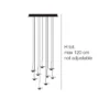 Sorgente Luminosa: LED 24V, 110V o 240V , 9x1W, K 2700 – lumen 1287 – CRI >80 – triac dimmerabile – Dimensioni: base 30×30 cm, H tot. 120 cm non regolabile, lenti Ø 32 mm