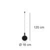 Sorgente luminosa: LED 1×1,7W @24V / potenza nominale 1,7W – classe energetica F – 172 lumen – 2700K – CRI 91. Driver non incluso, disponibile a richiesta. Dimensioni: Ø 16 cm H 120 cm