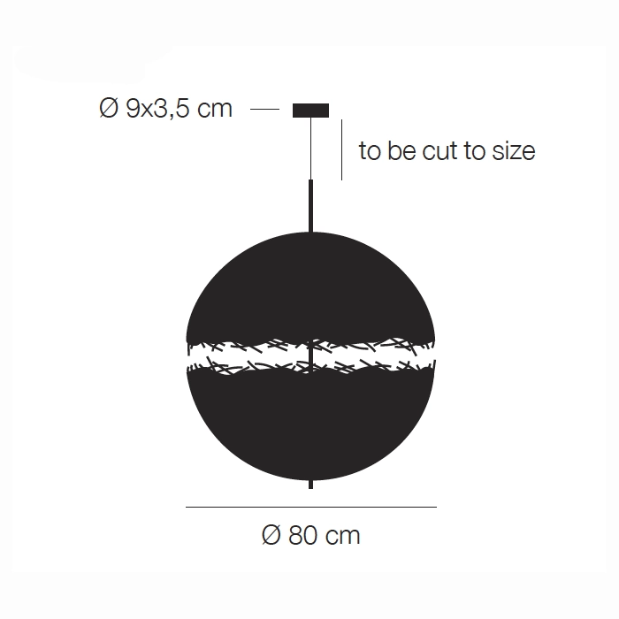 Sorgente Luminosa: LED E27, 110V (lampadina non fornita) o 240V, AC 3x8W, 2700k – lumen 2700 – CRI >80 – dimmerabile – Dimensioni: Schermi ร 80 cm, Base ร 9ร3,5 cm, Cavo tagliabile a misura, H Max, 220 cm / asta 100 cm