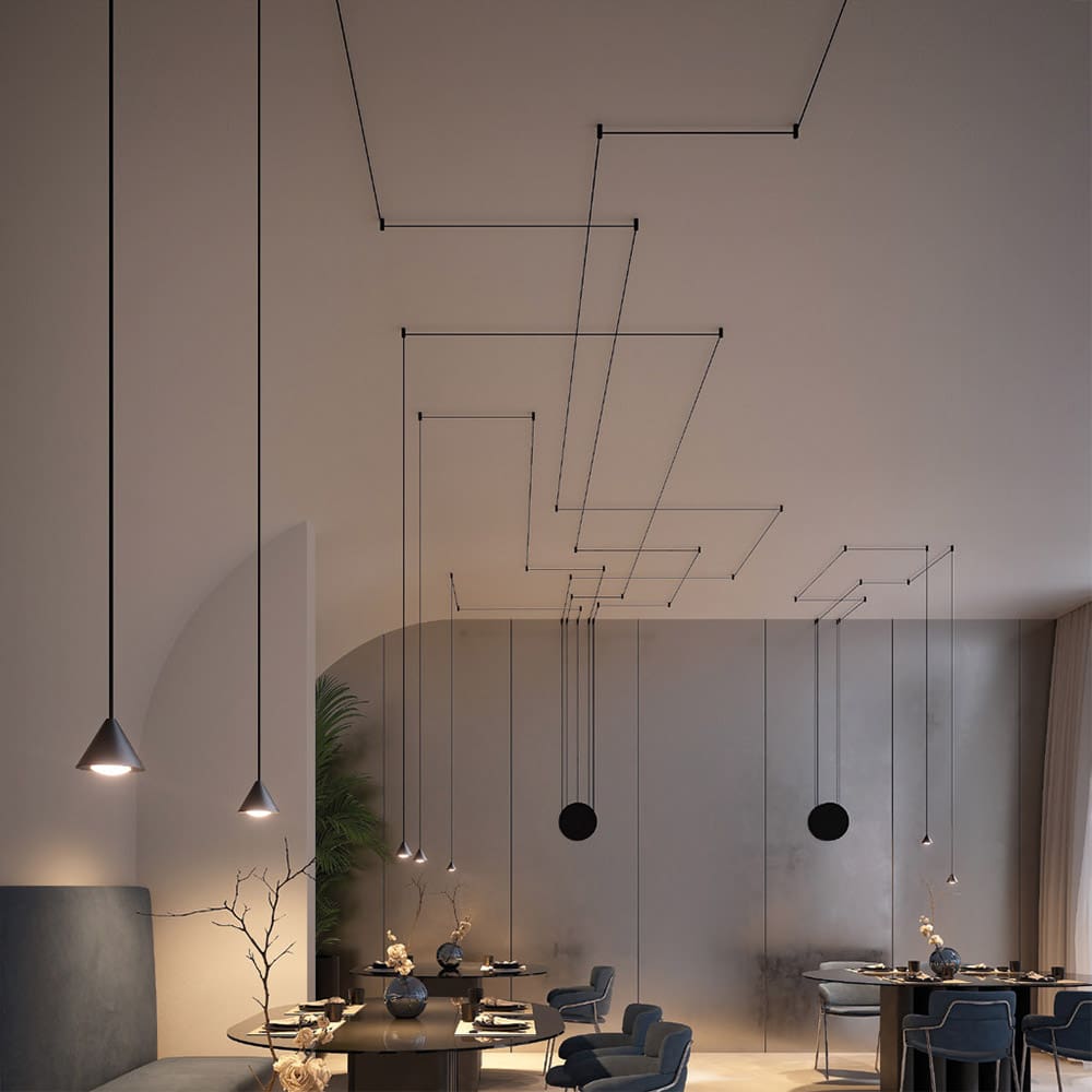 Cordina Conico di Cini&Nils è una lampada a sospensione per interni che unisce design essenziale e versatilità compositiva. Parte della Collezione Cordina, è disponibile in due dimensioni (50 e 100 mm) e in diverse finiture: nero, bianco, oro, ororosa e argento, per adattarsi a ogni stile d’arredo. Il sistema Cordina permette di collegare il punto di alimentazione elettrica con le aree della stanza che necessitano di uno o più punti luce, grazie a un cavo lungo fino a 10 metri. Questo consente audaci composizioni di design che sfidano la gravità, creando raffinati giochi di geometrie luminose caratterizzati da una luce intima e diffusa. La sorgente LED integrata da 5W, disponibile con temperatura colore di 2700K, 3000K o 4000K, garantisce un’illuminazione efficiente e confortevole. Cordina Conico trasforma ogni ambiente con la sua eleganza versatile.