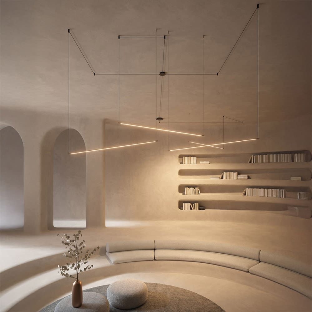 Cordina Lineare di Cini&Nils è una lampada a sospensione per interni che unisce design essenziale e versatilità compositiva. Parte della Collezione Cordina, è disponibile in diverse finiture: nero, bianco, oro, ororosa e argento, per adattarsi a ogni stile d’arredo. Il sistema Cordina permette di collegare il punto di alimentazione elettrica con le aree della stanza che necessitano di uno o più punti luce, grazie a un cavo lungo fino a 10 metri. Questo consente audaci composizioni di design che sfidano la gravità, creando raffinati giochi di geometrie luminose caratterizzati da una luce intima e diffusa. La sorgente LED integrata da 10W, disponibile con temperatura colore di 2700K, 3000K o 4000K, garantisce un’illuminazione efficiente e confortevole. Cordina Lineare trasforma ogni ambiente con la sua eleganza versatile.