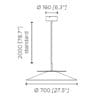 Sorgente Luminosa: 1 x 40W COB LED – 4500 lumen – 2700 K – CRI>90 – 220/240 V – Dimmerabile a taglio di fase/Triac – IP20. Dimensioni: H 2265 mm Ø 700 mm