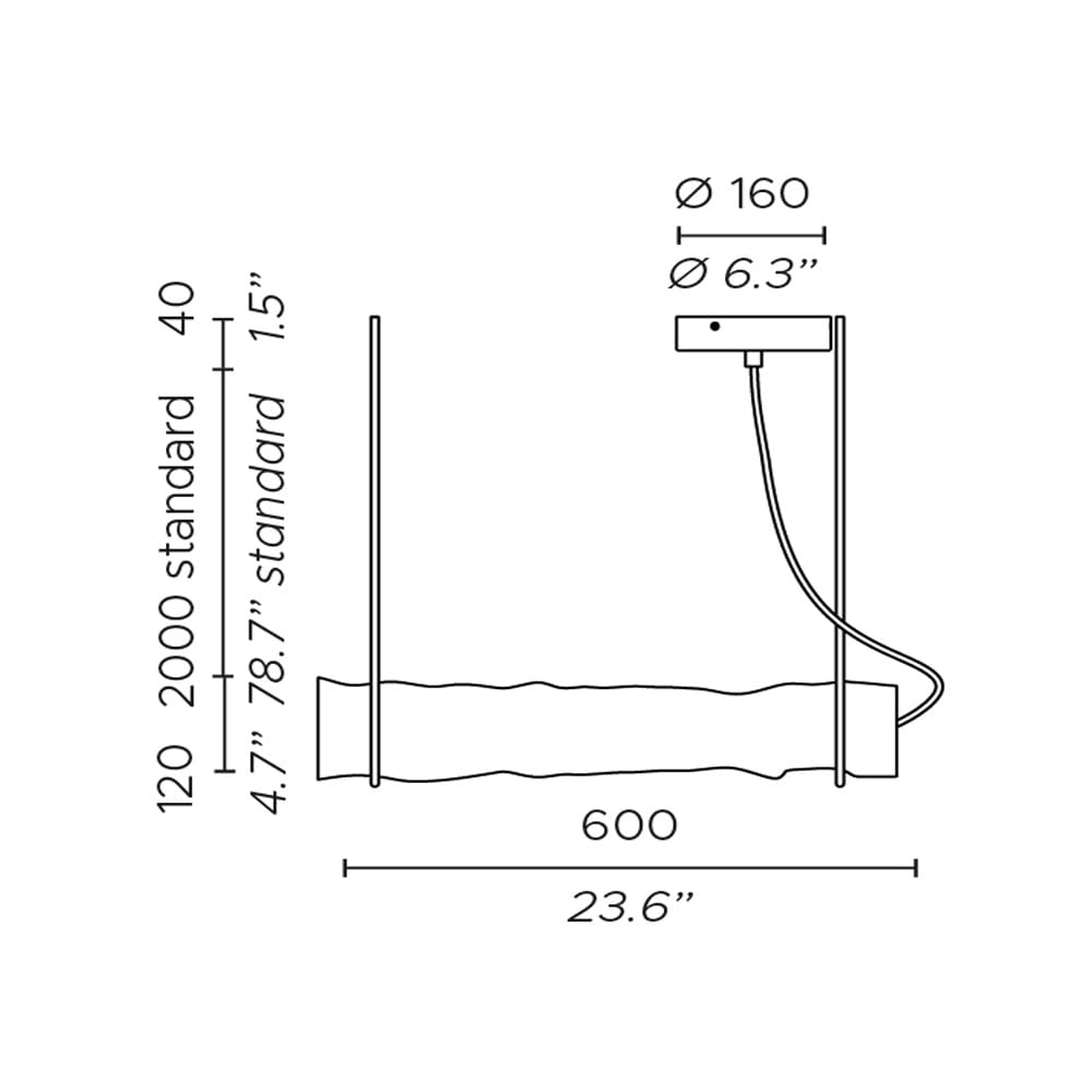 Sorgente Luminosa: 1 x 21W Strip LED personalizzato – 2165 lumen – 220/240 V – Dimmerabile a taglio di fase/Triac – IP20. Dimensioni: H 2160 mm L 600 mm W 160 mm